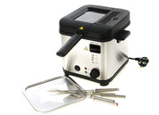 Фритюрница 850 W Питание от сети 220-240 W Температура плавно регулируется до 190 ° C Корзина из нержавеющей стали - безопасна для посудомоечной машины Размеры: 26 x 24 x 21 см. Вместимость: не более 1, 5 л.